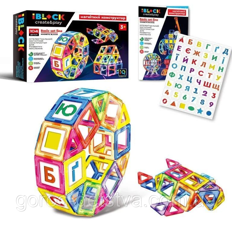 Іграшковий конструктор магнітний для дітей iBlock PL-920-09 (104 деталі), в коробці