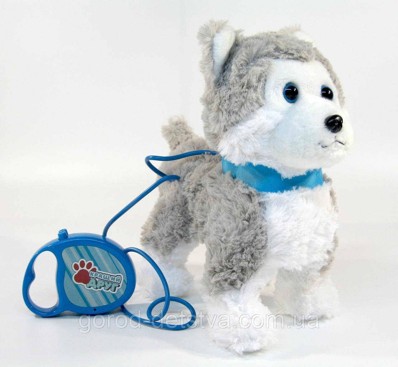 М'яка іграшка Собачка Хаскі Кращий друг PL 8201 на повідку гавкає ходить виляє хвостом