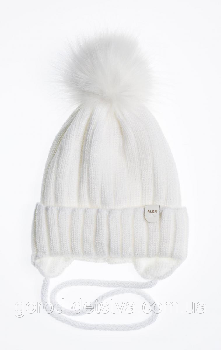 Зимова дитяча шапочка з бубоном на зав'язках для дівчинки розмір 48-50 см